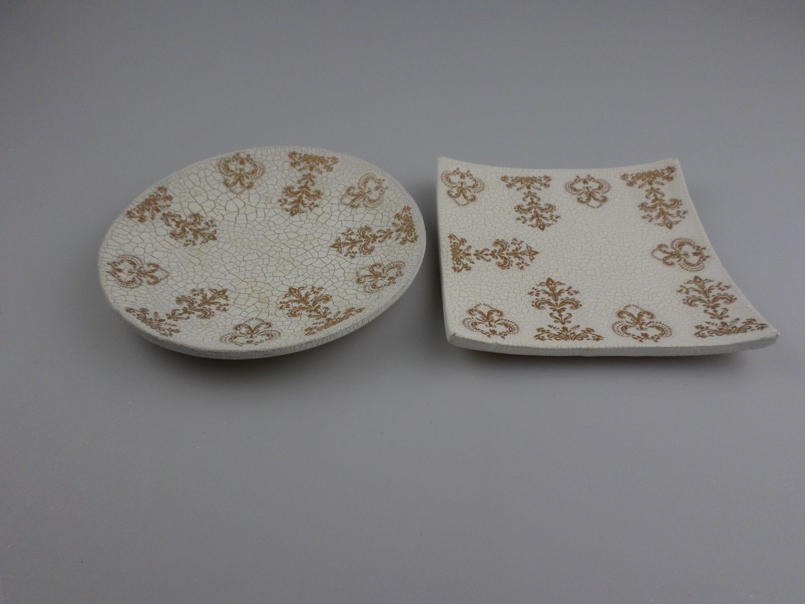 Mobile Preview: RESTPOSTEN+SONDERPOSTEN- Deko Teller cremefarben mit goldenen Ornamenten 8 STÜCK