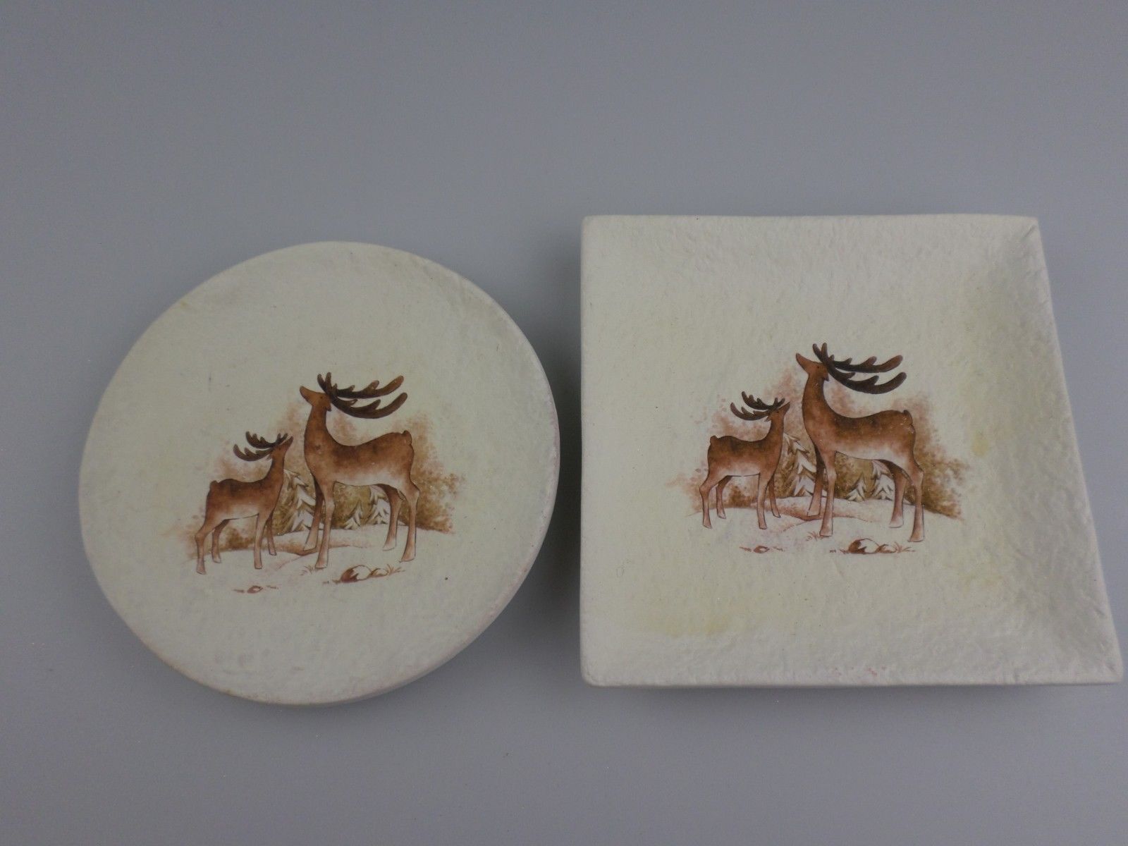 RESTPOSTEN+SONDERPOSTEN, Dekoteller cremeweiß mit Hirschmotiv 8 STÜCK